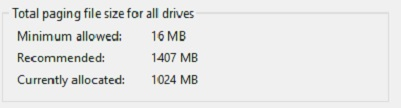 您可以看到 AllocatedBaseSize(即當前已分配)、TempPageFile(檢查是否建立了臨時頁面檔案)和頁面檔案的 CurrentUsage。