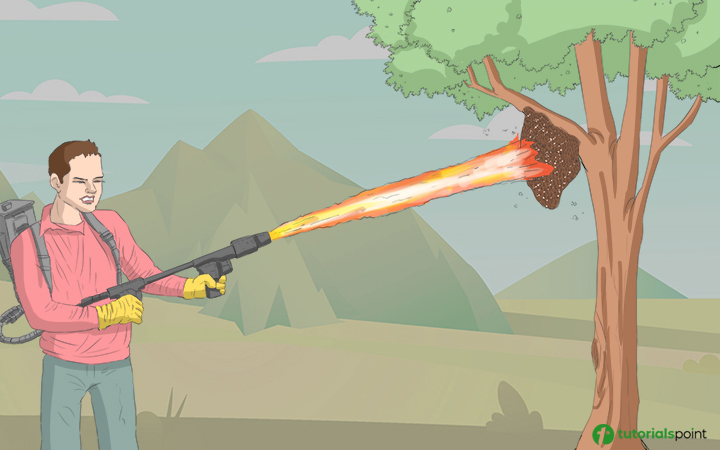 焚燒黃蜂窩 − 這種方法非常危險。黃蜂窩是由一種薄薄的、類似紙張的材料構成的,這種材料是透過將木材製成紙漿製成的。這種物質使蜂巢極易燃燒。由於其爆炸性,焚燒黃蜂窩可能會導致整個房產起火,在此過程中,個人甚至可能遭受嚴重的燒傷!除了燒燬一切之外,這種方法還有另一個問題。燒燬蜂巢後,巢內並非所有黃蜂都被殺死。這會導致剩餘的黃蜂攻擊附近所有人。