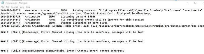 執行測試完成後,將生成日誌記錄,因為 Firefox 登入使用 geckodriver 登入。Firefox 生成的日誌記錄可透過設定某些引數停用。