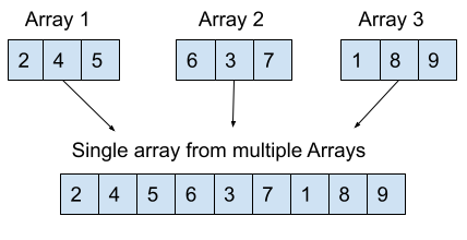 我們給出了兩個或多個數組,我們必須將它們連線到一個數組中。可以給出許多陣列,連線後應顯示為單個數組。