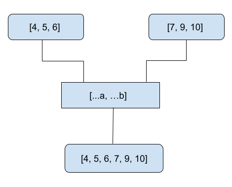 // Define arrays var name1 = ['Nick', 'John', 'Mili']; var name2 = ['Peter', 'Abraham', 'Avi']; //using spread operator var combine = [...name1, ...name2]; console.log(combine);