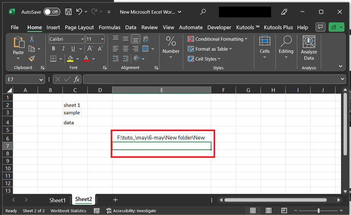 本文將指導使用者學習如何使用三種可能的方法在 Excel 中獲取活動工作表的位置/路徑。本文包含三個示例。第一個示例基於使用者自定義公式。第二個示例基於 VBA 程式碼的使用,最後第三個示例使用了 Kutools 擴充套件。所有三個示例都使用相同的 Excel 工作表來顯示處理過程。提供的三個示例將精確地執行相同的任務,但使用不同的方法。本文的主要目的是瞭解執行相同任務的不同方法。