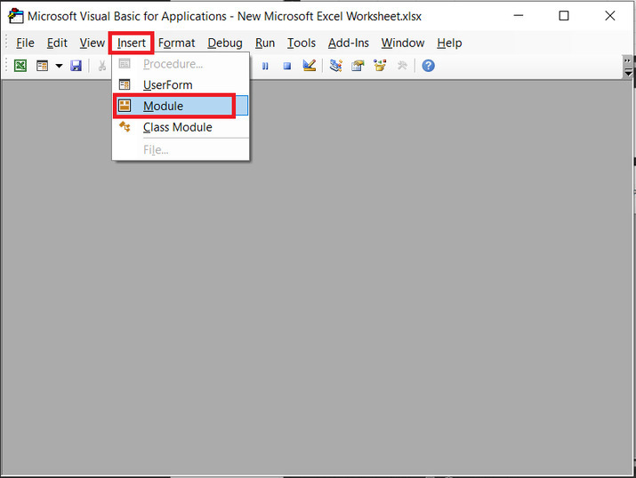 轉到“插入”選項卡,然後選擇名為“模組”的選項。請參考影像快照: