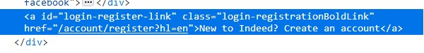 然後,我們必須藉助getAttribute方法,並將 href作為引數傳遞給該方法。讓我們看一個帶有具有 class 和 href 屬性的 anchor 標籤的元素的 html 程式碼。該元素的 href 值應該是 /account/register?hl=en。