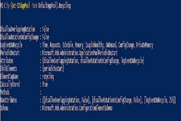 PS C:\> (Get-IISAppPool -Name DefaultAppPool).Recycling