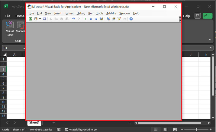 上述步驟將開啟一個“Microsoft Visual Basic for Applications”對話方塊,如下所示: