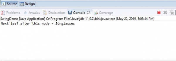 使用 getNextLeaf() 方法來獲取 JTree 中此節點之後的葉子。此處,我們在控制檯(Console)中顯示節點“three”之後的葉子 −