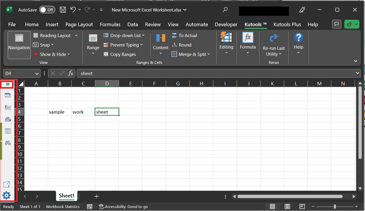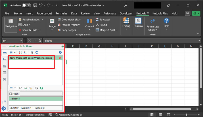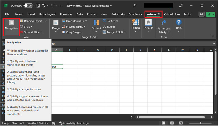 在此示例中,再次考慮同一個工作表。在此示例中,開啟“Kutools”編輯器。在“檢視”部分下,選擇“**導航**”選項。