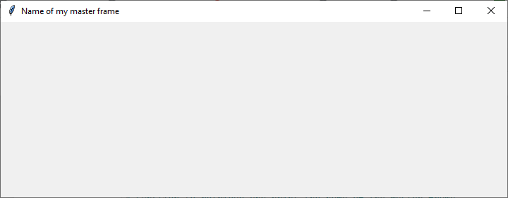 在上面的程式碼中,我們匯入了 tkinter 模組並建立了一個 Tk 的例項,它表示應用程式的主視窗。出於說明目的,我們將視窗的標題設定為“我的應用程式”。接下來,我們建立一個名為 master_frame 的 Frame 小部件作為根視窗的子級。我們使用 name 引數將名稱“master_frame”分配給此框架,這使我們能夠稍後訪問它。最後,我們使用 root.mainloop() 啟動 Tkinter 事件迴圈。