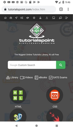 ”圖示。選擇你的移動裝置作為選項,然後檢查你的移動裝置,它將顯示你的預設螢幕 −