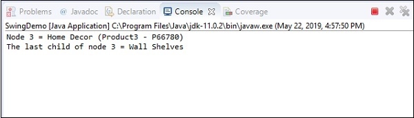 System.out.println("The last child of node 3 = "+node3.getLastChild());以下是一個在 JTree 中獲取此節點的最後一個子節點的示例 -