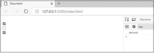 這將產生以下輸出,在控制檯中顯示可見值“second”−