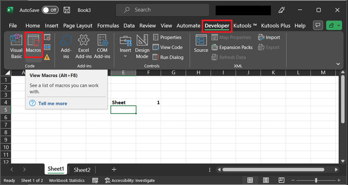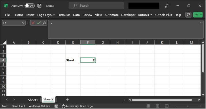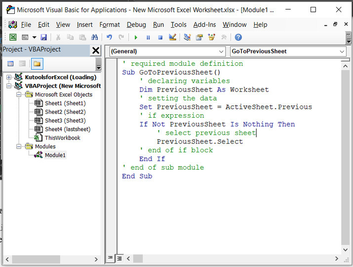 當用戶需要查詢任何資料或希望理解上一張和最後一張工作表上的資料時,需要切換到上一張和最後一張工作表。協調所有工作表中的資料很有好處,因為它允許使用者使用所有資料來生成結果。這將使資料保持一致和準確。本文為使用者提供了兩個示例。第一個示例基於使用VBA程式碼,而第二個示例基於使用Kutools。使用Kutools更高效,並且耗時更少。但是它只能用於包含Kutools擴充套件的系統,而VBA程式碼方法可以用於所有Excel工作表,因為不需要安裝任何額外的外掛。