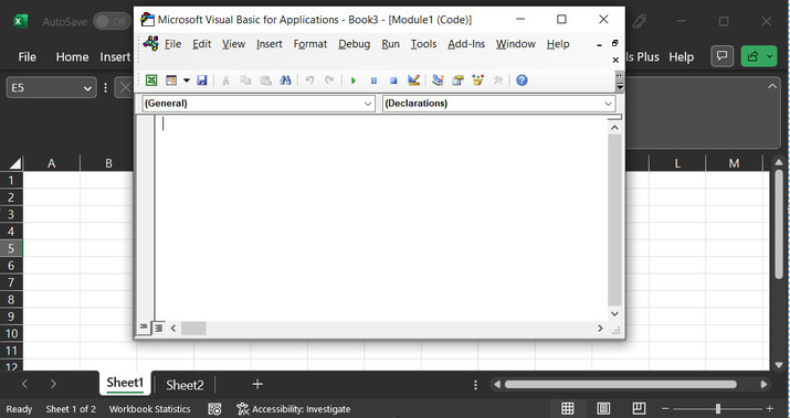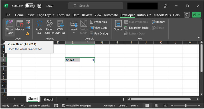 要執行VBA程式碼,使用者需要開啟VBA程式碼區域。為此,可以按“Alt”+F11鍵組合,或者單擊“開發工具”選項,然後單擊“Visual Basic”。