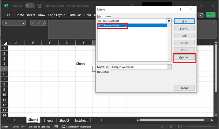 這將開啟一個“宏”對話方塊,從列表中選擇名為“set_last”的方法,然後單擊“選項...”按鈕。