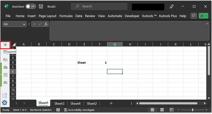 這將在頁面左側顯示Kutools工具欄。在出現的窗格中,單擊“展開”按鈕。請參考以下截圖: