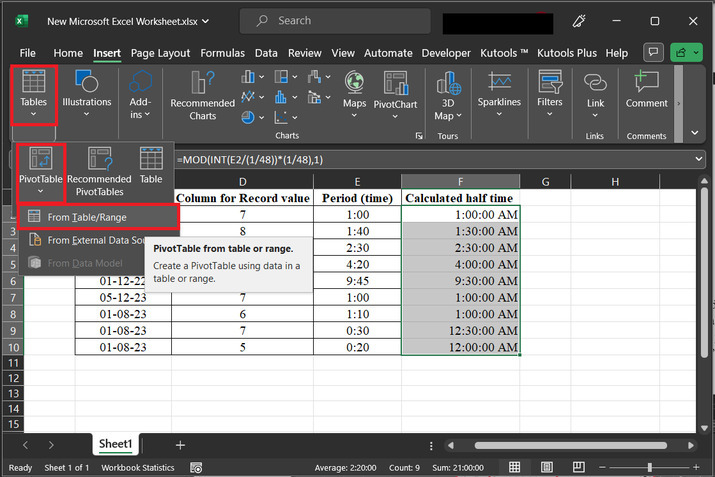 本文將指導使用者學習如何在 Excel 資料透視表中按半小時或 15 分鐘對資料進行分組。它允許使用者根據不同範圍的值(而不是單個值)對特定資料進行彙總和分析。本文包含一個示例,該示例使用插入表格中可用的資料透視表選項對 Excel 資料透視表的可用小時資料進行分組。在初始步驟中,表格將轉換為資料透視表,然後根據使用者的需求對獲得的表格資料進行分組。