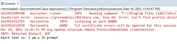System.out.println("Alert text is: " + s);