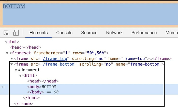 上圖中高亮的標記名稱是 frame,並且 name 屬性的值是 frame_bottom。