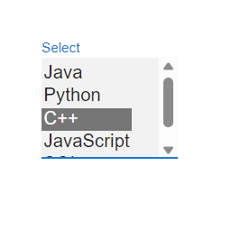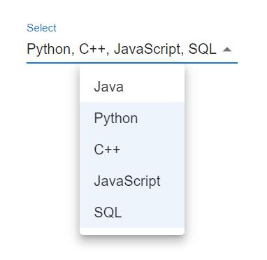 import React from "react"; import { useState } from "react"; import InputLabel from "@mui/material/InputLabel"; import MenuItem from "@mui/material/MenuItem"; import { Box } from "@mui/material"; import FormControl from "@mui/material/FormControl"; import Select from "@mui/material/Select"; const language = ["Java", "Python", "C++", "JavaScript", "SQL"]; const App = () => { const [state, setState] = useState([]); const handleMultiple = (e) => { const { target: { value }, } = e; setState( typeof value === "string" ? value.split(",") : value ); }; return ( <div> <Box sx={{ p: 10 }}> <FormControl variant="standard" size="large" sx={{ m: 1, minWidth: 120 }}> <InputLabel id="select" label="Lang"> Select </InputLabel> <Select multiple value={state} onChange={handleMultiple}> {language.map((lang) => ( <MenuItem key={lang} value={lang}> {lang} </MenuItem> ))} </Select> </FormControl> </Box> </div> ); }; export default App;