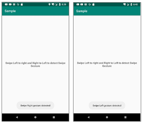 此示例演示瞭如何在 Android 上處理從右到左和從左到右的滑動手勢。