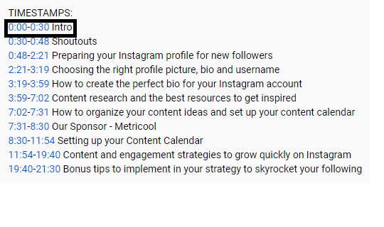 這是一個完美的例子,因為這個YouTube頻道——MODERNMILLIE使用了時間戳來定義開頭影片的時間段。
