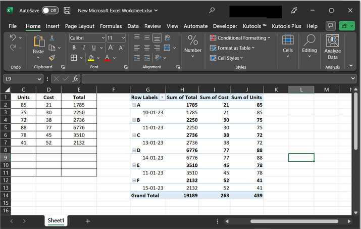 單擊“+/-**按鈕**”選項後。所有展開/摺疊按鈕都將從資料透視表中隱藏,如下面的影像所示。