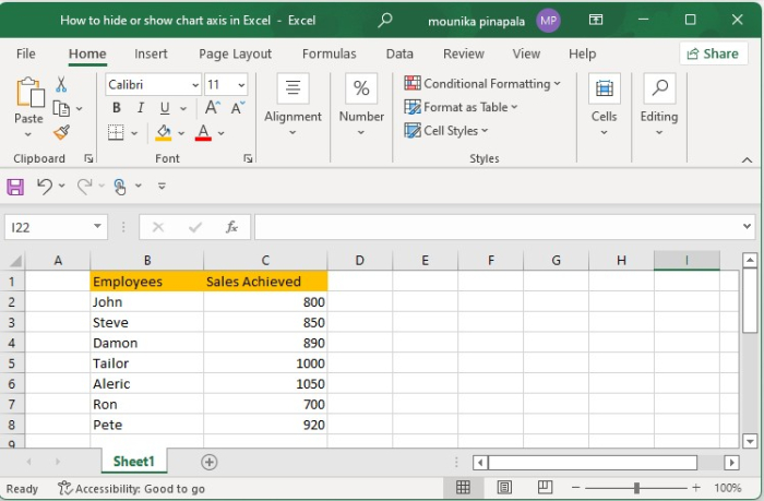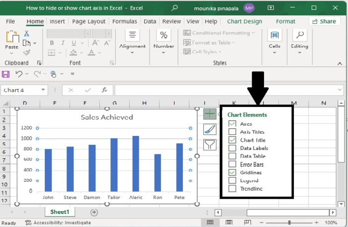 這就是您在 Excel 表格中隱藏或顯示軸的方式。