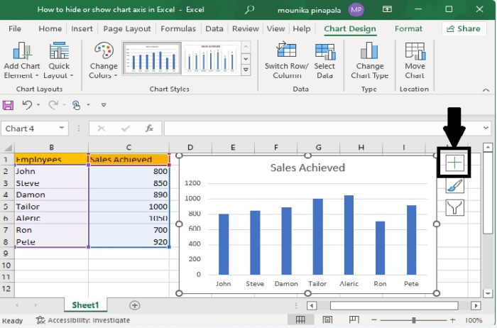 選擇圖表元素,即“加號(+)”以在 Excel 表格中開啟圖表元素選單。