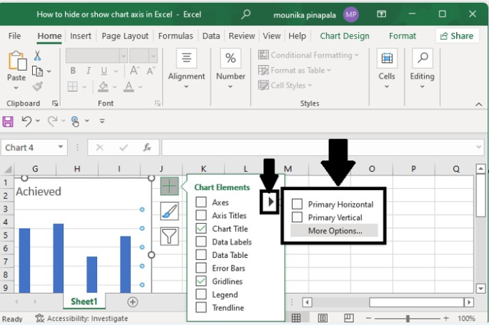 如果要隱藏一個或多個軸,請單擊“向右”箭頭,如下所示。