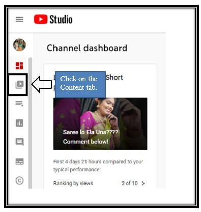 步驟 2 - 您將進入頻道資訊中心頁面。在左側點選“內容”選項卡。
