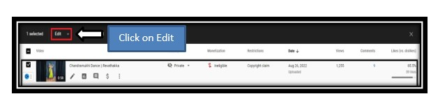 步驟 4 - 如果您想隱藏單個影片的點贊和點踩按鈕,請點選該影片。在頂部,您會找到“編輯”選項。
