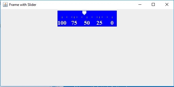 JSlider slider = new JSlider(JSlider.HORIZONTAL, 0, 100, 55); slider.setInverted(true); slider.setMinorTickSpacing(10); slider.setMajorTickSpacing(25); slider.setPaintTicks(true); slider.setPaintLabels(true); slider.setPaintTrack(false);
