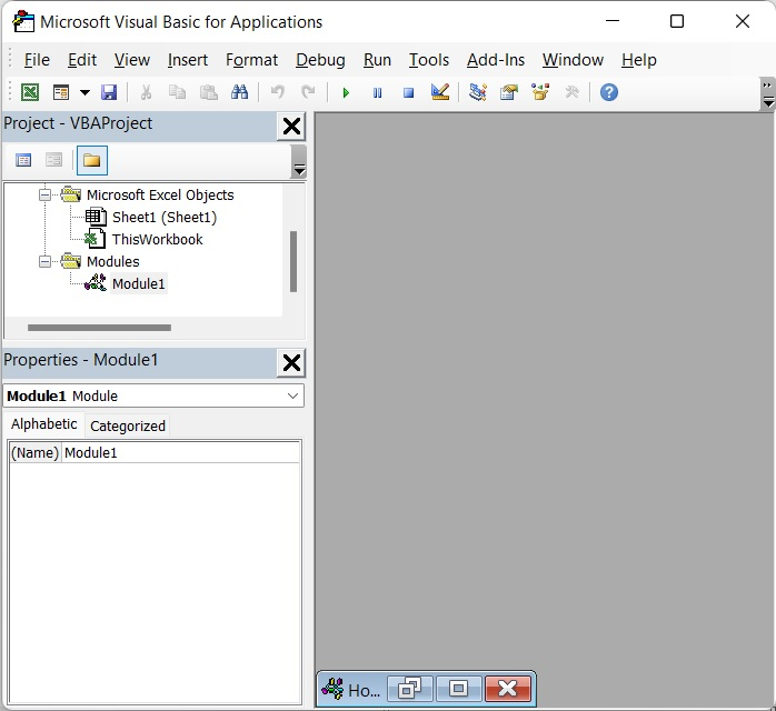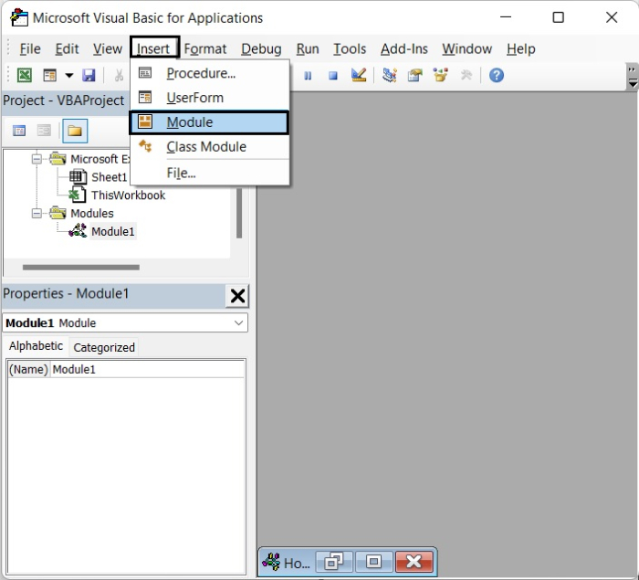 開啟模組視窗後,在其中鍵入以下 VBA 程式碼。
