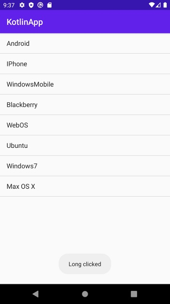 此示例演示瞭如何使用 Kotlin 在 Android 列表檢視中實現長按監聽器。