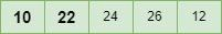 目前,已排序子陣列中的元素為 10、22 和 24。