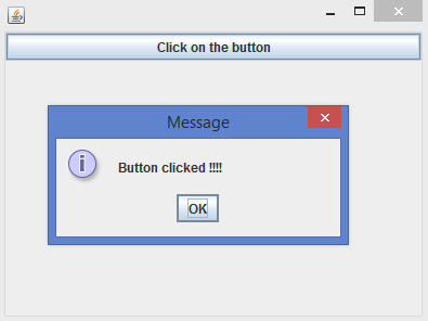btn.addActionListener(ae -> JOptionPane.showMessageDialog(null, "Button clicked !!!!"));