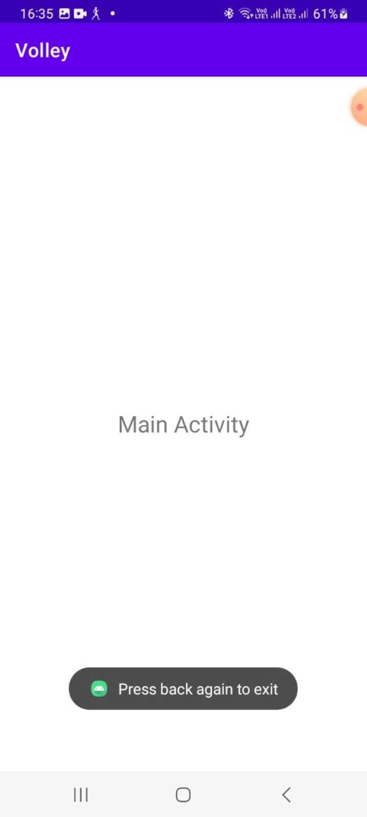 Toast.makeText(this, "Press back again to exit", Toast.LENGTH_SHORT).show();