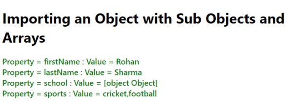 <h1>Importing an Object with Sub Objects and Arrays</h1>