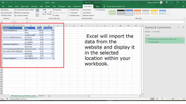 步驟 9 - 為了使網站資料整合變得輕而易舉,Excel 提供了一個高效的匯入功能。啟用後,此工具可以輕鬆檢索所需資訊。然後,它將在使用者選擇的工作簿中的使用者選擇的位置準確顯示選定的指標或資料集 - 從而簡化分析並提高生產力。