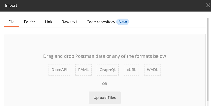 步驟 2 − 將開啟匯入彈出視窗,其中包含從檔案、資料夾、連結、原始文字和程式碼儲存庫匯入的選項。