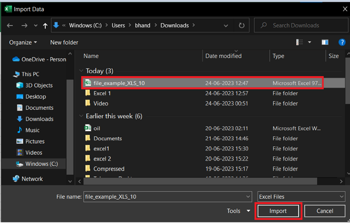 步驟2 - 它將開啟一個新視窗,您可以在其中選擇檔案並選擇“匯入”選項。