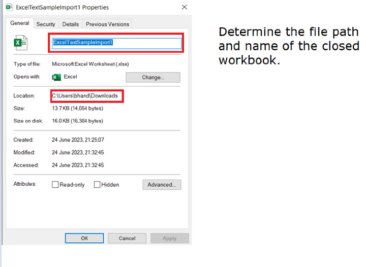 步驟2 - 請找到關閉的工作簿的檔案路徑和名稱。