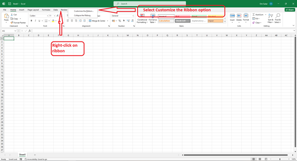 右鍵單擊功能區,然後選擇“自定義功能區”選項