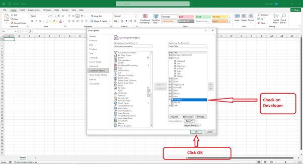 選中“開發工具”框,然後單擊“確定”