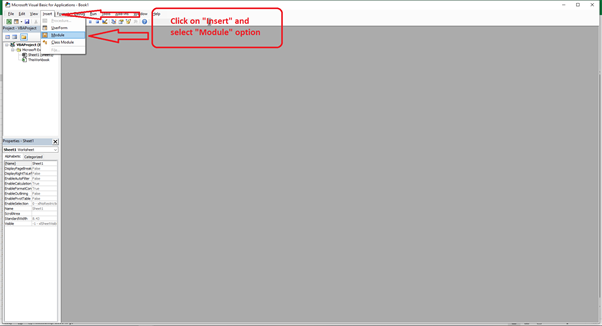 步驟 2 - 要插入一個新模組。您可以單擊 Visual Basic 編輯器中的“插入”,然後選擇“模組”。