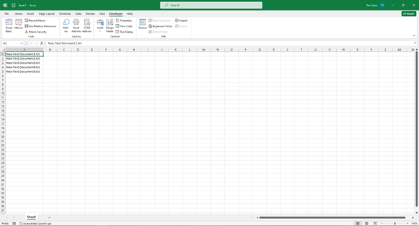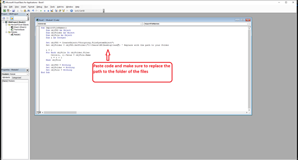 VBA 是一種整合到 Excel 中的強大的程式語言,它提供了自動化任務和擴充套件此軟體功能的機會。使用它,您可以快速地將多個檔名匯入 Excel 單元格,只需幾行程式碼。讓我們深入瞭解該方法 -