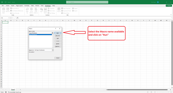 步驟 7 - 選擇“ImportFileNames”宏,然後單擊“執行”以執行程式碼。