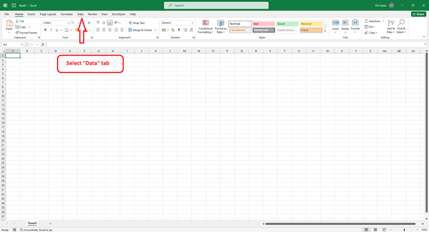 請訪問 Excel 中的“資料”選項卡,該選項卡位於螢幕頂部主功能區的頂部。此選項卡包含各種旨在提高資料管理效率的工具和功能。