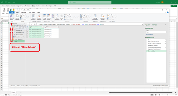 在 Power Query 編輯器視窗中,單擊“關閉並載入”以載入必要的內容。